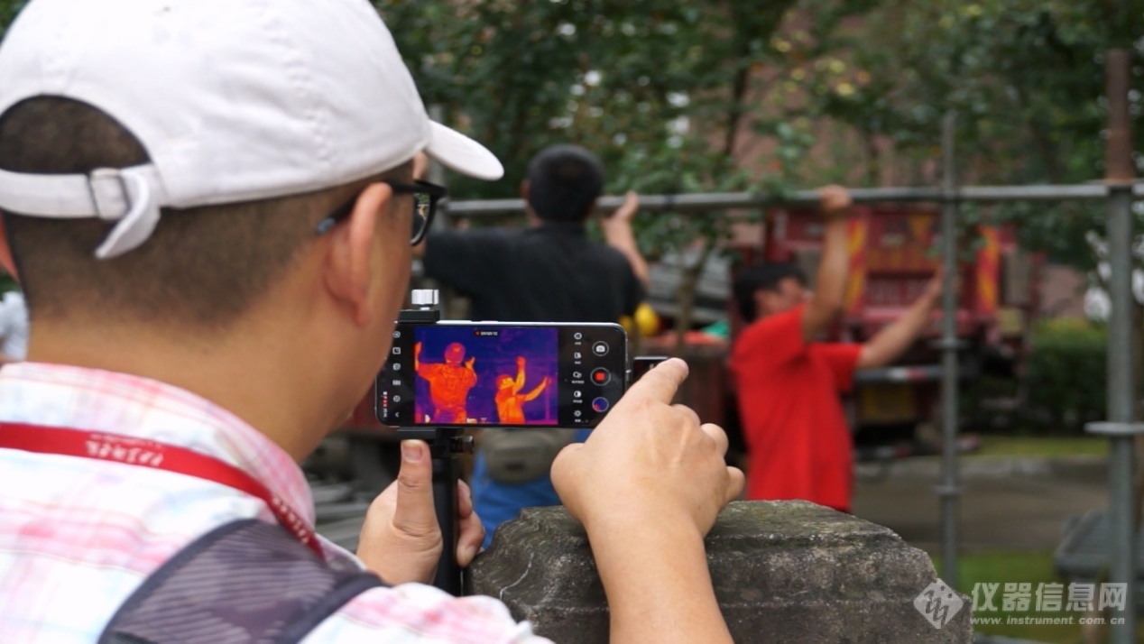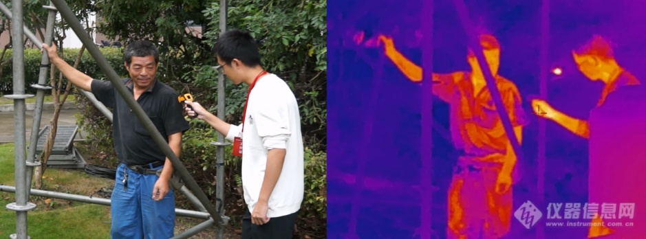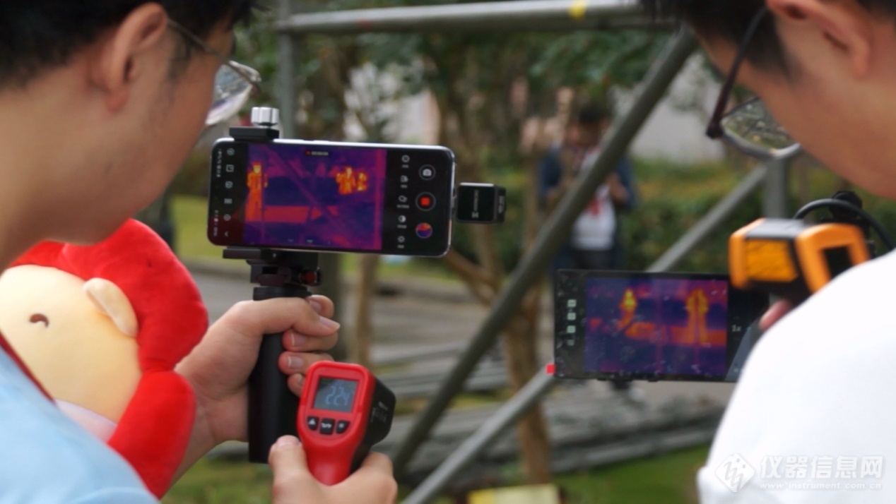 带队教师用热成像仪拍摄搭建器材的工作人员