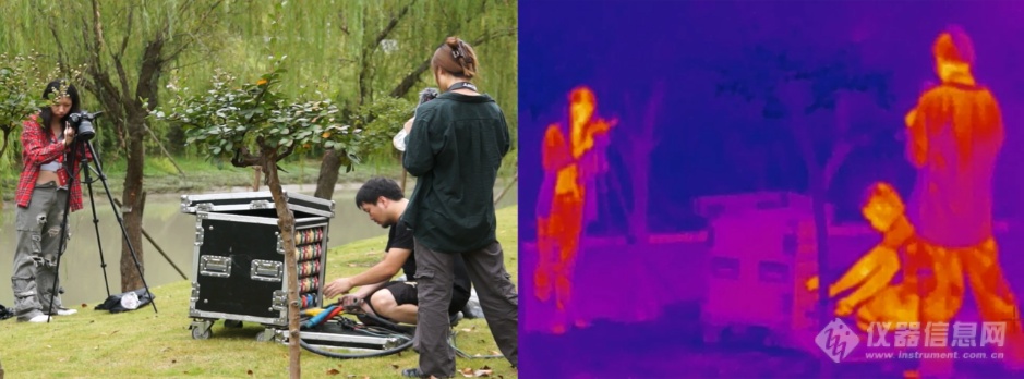 可见光-热成像拍摄对比图之一-樱桃河畔,桥边行人