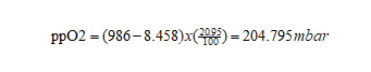氧分压和总气压,我们可以计算出氧的体积含量。