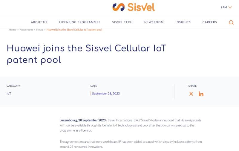 (电子发烧友网报道 文/章鹰)9月28日,专利运营公司Sisvel宣布华为加入其蜂窝物联网(C-IoT)专利池。