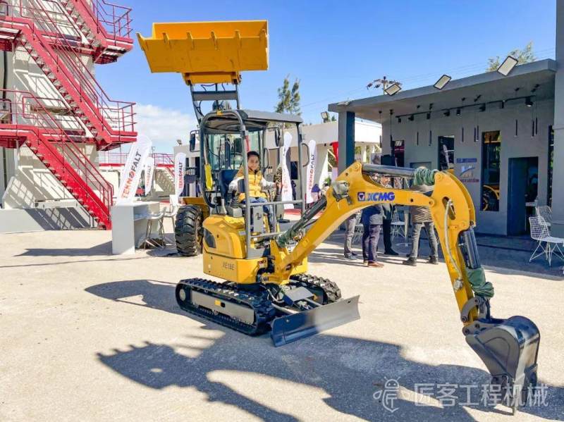 作为全场最迷你的工程机械产品,XE18E娇小的身姿、阔气的敞篷吸引了无数客户围观。
