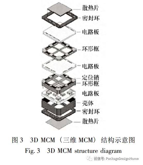 图3展示了一种多芯片模块之间采用毛纽扣垂直互联结构的三维MCM示意图,可见,在垂直排列且互联的二维MCM之间,采用了金属环形框实现固定,用金属框完成信号连接、隔离以及接地,且易于实现每个模块的散热。