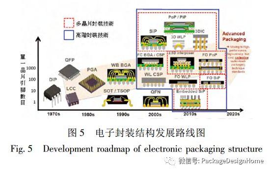 图5所示为电子封装结构发展路线图,展现了电子封装结构随着技术进步正向高集成度、低成本、高性能的3D微系统封装方向发展。