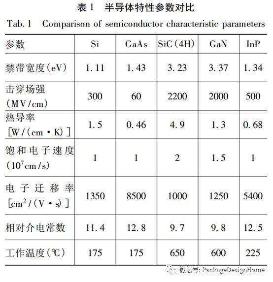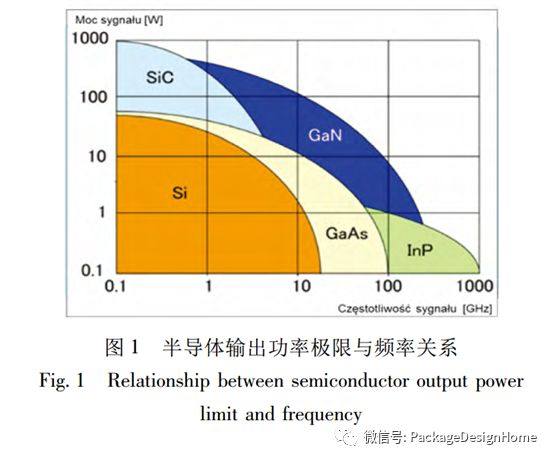 从半导体材料来说,宽禁带半导体的异军突起为微系统技术提供了有力的基石;国外以GaAs为代表的第二代半导体已发展成熟,正大力发展以GaN为代表的第三代半导体MMIC器件。表1是几种半导体材料的特性参数对比[1],图1是半导体输出功率极限与频率关系。