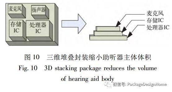 针对数字助听器等医疗器件中的几个关键部件,已有企业采用微系统技术中裸芯片三维堆叠封装工艺,使医疗器件主体部分体积大大缩小,见图10[17]。