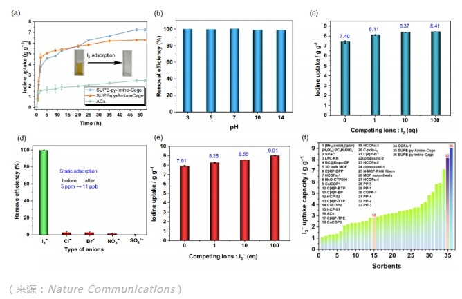结果均证明,在 pH 大于 3 的条件之下,含有亚胺键的超蕃确实是稳定的,并且能够对碘进行高效吸附,这也让他们对亚胺化学有了新的认识。