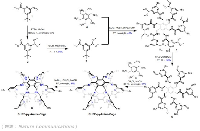 他们将吡啶功能基元引入到超蕃骨架中,旨在赋与超蕃更加优异的主客体识别性能。经过三个月左右的探索,课题组成功合成了一类吡啶基功能超蕃。