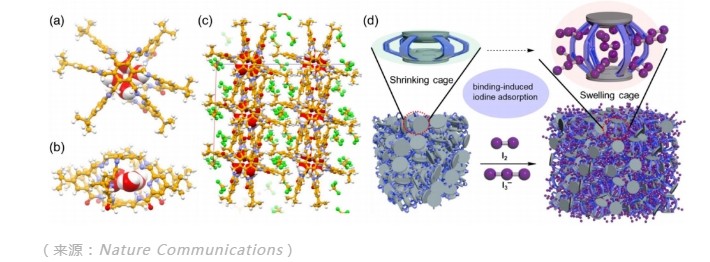 而当他们尝试碘吸附性质时,起初也并未获得较为惊人的发现。即其对于气态碘的吸附容量,与目前已经报道的最佳多孔吸附材料相比仍然有着较大差距。