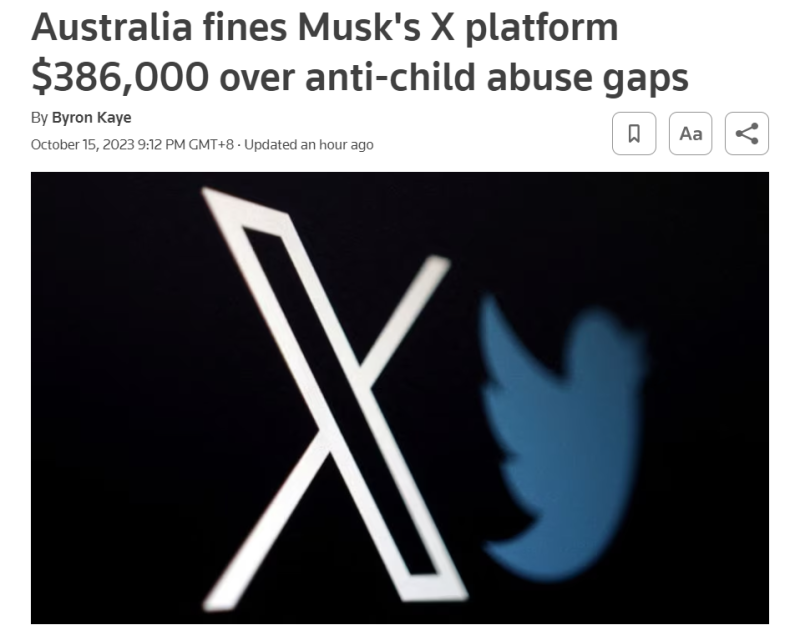 IT之家 10 月 15 日消息,据路透社报道,澳大利亚监管机构对 X(推特)处以 61.05 万澳元(IT之家备注:当前约 281.4 万元人民币)的罚款,原因是其未能配合针对反虐待儿童做法的调查。