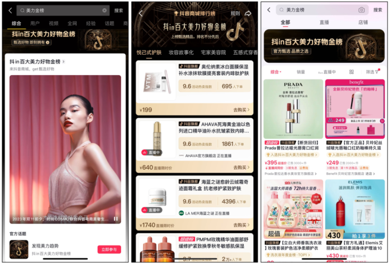 抖in百大美力好物金榜,是抖音电商美奢生活行业基于平台商品数据和用户消费评价及商家全域经营能力等维度,由美妆达人、美妆护肤专家、媒体、第三方机构共同评选出的百大美妆个护优质商品,旨在为用户提供更多维度的消费参考、成为双十一美护一站式购买指南。
