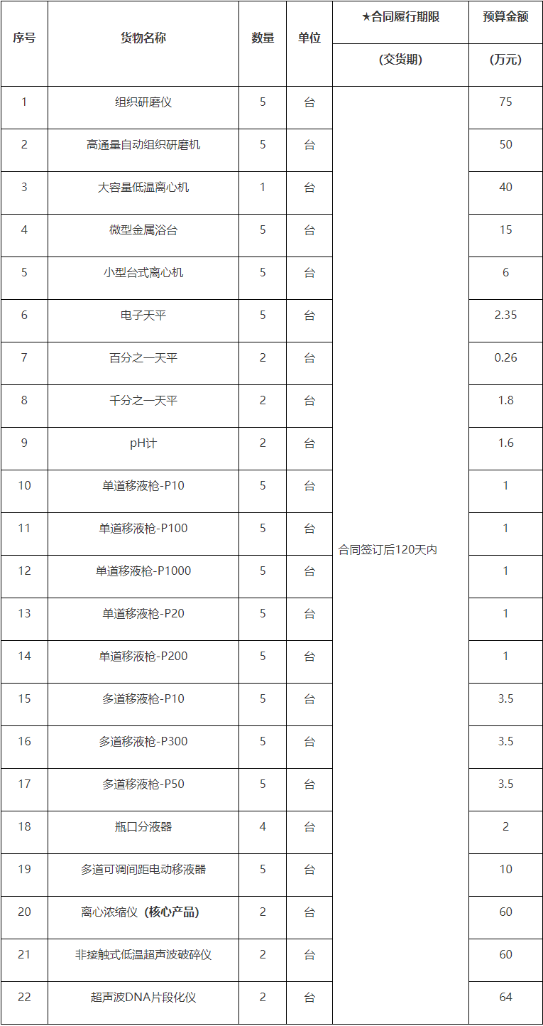 3.本项目的特定资格要求:(1)本次采购接受进口产品投标。(注:本文件所称进口产品是指通过中国海关报关验放进入中国境内且产自关境外的产品)。(2)投标人必须是所投组织研磨仪、高通量自动组织研磨机、大容量低温离心机、离心浓缩仪、非接触式低温超声波破碎仪以及超声波DNA片段化仪的制造商或代理商,代理商投标须提供制造商的专项授权(本条适用于进口产品);(3)中标后不允许转包、分包。(4)拒绝下述投标人参加本次采购活动的情形:①投标人单位负责人为同一人或者存在直接控股、管理关系的不同投标人,不得参加同一合同项下的政府采购活动。②凡为采购项目提供整体设计、规范编制或者项目管理、监理、检测等服务的投标人,不得再参加本项目的采购活动。③拒绝列入失信被执行人、重大税收违法案件失信主体、政府采购严重违法失信行为记录名单的投标人参与政府采购活动。采购代理机构在评标时通过“信用中国”网站、中国政府采购网等渠道查询投标人在提交投标文件截止时间之前的信用记录并保存。