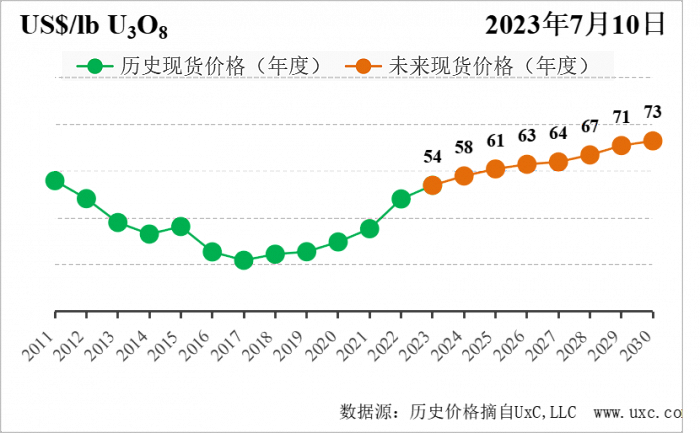 中国核能协会国际天然铀中长期-年度现货价格预测指数(季度更新) 图片来源:中国核能协会