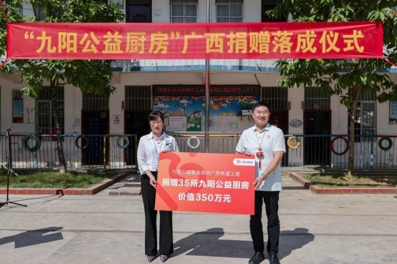 广西是九阳公益基金会成立后的第一个对接帮扶自治区。2022 年,九阳公益基金会项目团队随广西青基会一同走访考察广西南宁、柳州等地乡村学校厨房供餐情况,针对每所学校的条件及供餐需求,提供一校一案的资助方案。今年首批试点 13 所九阳公益厨房的落成开餐,是九阳和广西青基会在助力儿童健康领域非常成功的一次合作案例。