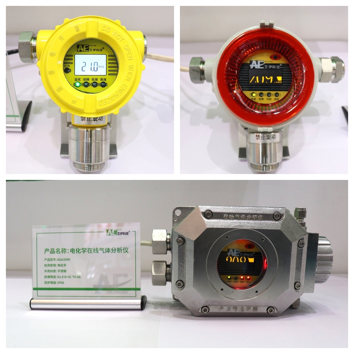 目前,艾伊科技已自主研发有 AGA5000d型激光气体分析仪、AGA1010系列顺磁气体分析仪,AGA3000电化学在线气体分析仪等多种原理的氧分析设备。此外,为了解决医药、农药等行业的生产安全问题,艾伊科技还推出AGP200离心机、反应釜氧气分析系统,24小时在线测量内腔的氧含量,预防生产过程中的安全风险。