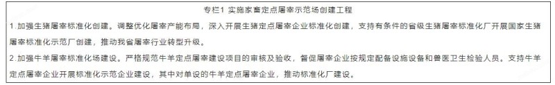 3.数字变革,创新提质。推动小型生猪屠宰场点兼并重组和改造提升,加快家畜屠宰行业转型升级。鼓励家畜屠宰企业应用数字化技术提升屠宰质量和效能,支持标准化改造,推动经营方式由代宰向自营,由生猪屠宰向多畜种集成屠宰,由单一屠宰向养殖、屠宰、加工、配送、销售等一体化发展。