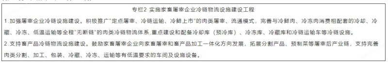 (三)加强政策支持。各地要制定促进家畜屠宰产业发展、强化行业监管的政策措施,强化家畜屠宰监督管理能力建设,支持屠宰和畜产品加工一体化企业发展,支持牛羊定点屠宰企业标准化、家畜定点屠宰企业冷链物流设施、屠宰企业数字化等工程建设,将屠宰检疫、疫病监测、监督执法、病死(害)畜禽及产品等无害化处理所需经费纳入财政预算。要结合实际,加大对新建、改扩建屠宰企业用地需求和财政资金扶持、金融支持力度,鼓励支持定点屠宰企业设立牛羊养殖场户的收运网点和牛羊肉品的配送网点,促进屠宰行业高质量发展。
