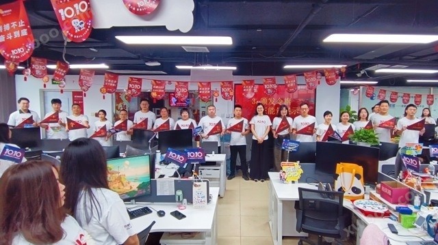 超燃线下活动嗨翻天!10月10日清晨,夜色还未完全褪去,玻多多的伙伴们已经陆续走进国联大楼。伙伴们在小手掌心愿卡上写下自己想说的话并贴到<双十愿望树>上,为双十送上祝福。玻多多CEO尹海凤写下祝福寄语“双十大卖,我们在一起”!是的,我们在一起,便可所向披靡!尹海凤为各部门授予作战令旗,一声多多,两相鼓劲,三声加油,全体伙伴正能量加持,为出战的双十先锋军呐喊助威。