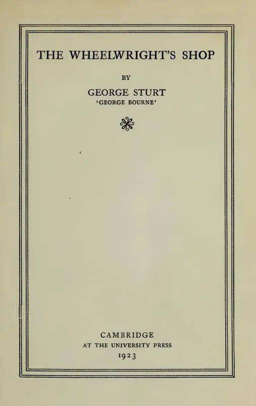 但是这些书的作者群以作家、艺术家、记者、职业建筑师或热爱乡村生活的乡绅为主,多从审美和怀旧的角度抒发惆怅情怀,鲜有真正来自乡土社会的农人和工匠描述乡土生活的实践,毕竟在当年,这些人大多没有接受过正式教育,不具备写作能力。所以其中一本由英格兰最后一代制作木车轮的工匠、作坊主乔治·斯特(George Sturt)所写的《车轮作坊》(The Wheel wright’s Shop, 1923)一书,就显得尤为珍贵。