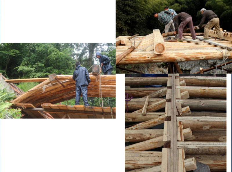 她发现,编木拱桥的“梁木正是通过编织关系相互别压、制约,每一根‘编织’姿态的纵向梁木都是受弯构件。结构的内力以弯矩的形式分担在编木拱的各个构件成员上”;“抽度/牛头撞的作用类似于一种预应力。在建造完成后,由于木材的收缩和结构的逐渐松弛变形,预应力会随着时间的推移而逐渐释放”;并认识到,“这些产生于施工过程、不断变化的内力,是采用现代结构理论对木拱桥进行结构计算与分析的难点。准确的计算需要建立在对结构现状的细致考察与密切监测上”。