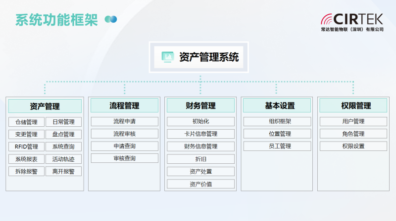 常达智能物联RFID资产管理系统,以RFID技术为基础,根据需要在标签或系统中存储资产数据,实现资产的申购、 使用、维修、盘点、报废等全生命周期管理,对重要资产实现实时监控管理。做到账账相符、账物相符,大大提高资产盘点的效率和资产利用率。
