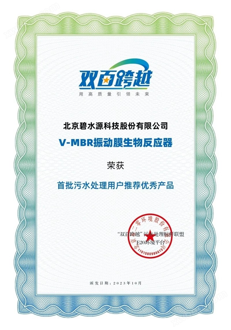 碧水源凭借V-MBR振动膜生物反应器入选年度用户推荐产品(曝气器、MBR、污泥设备)。