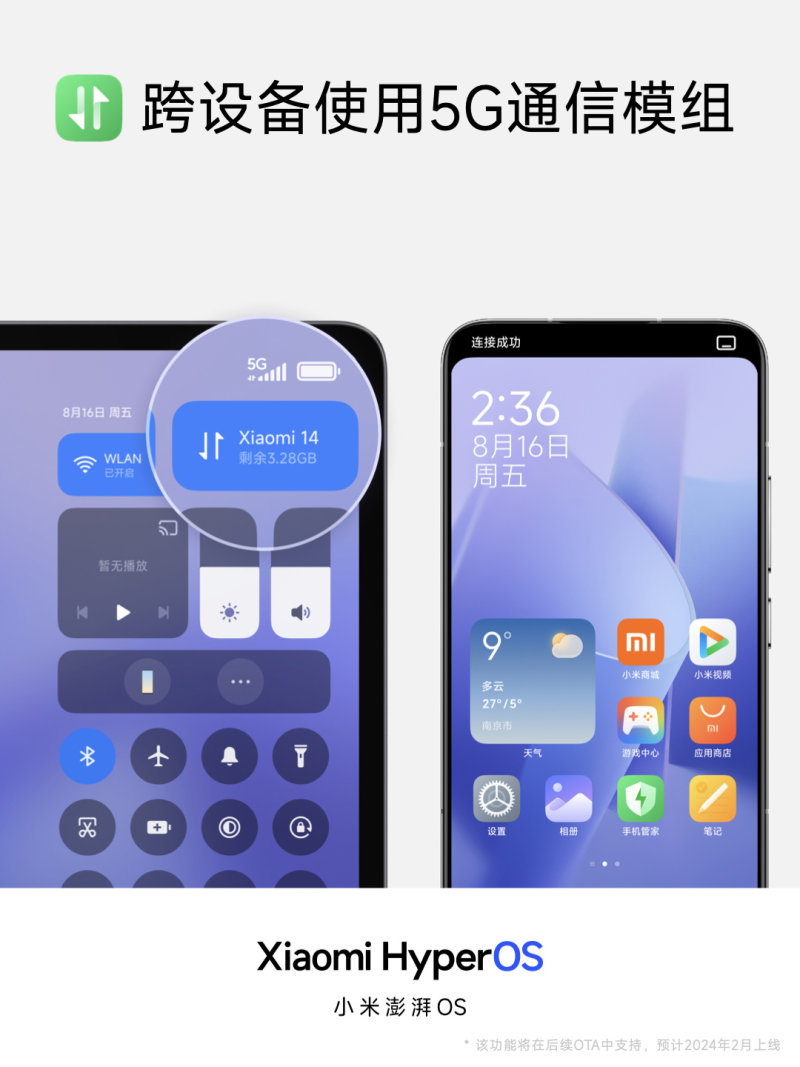 互联方面,小米澎湃 OS 搭载 Xiaomi HyperConnect,实现「跨端智联」: