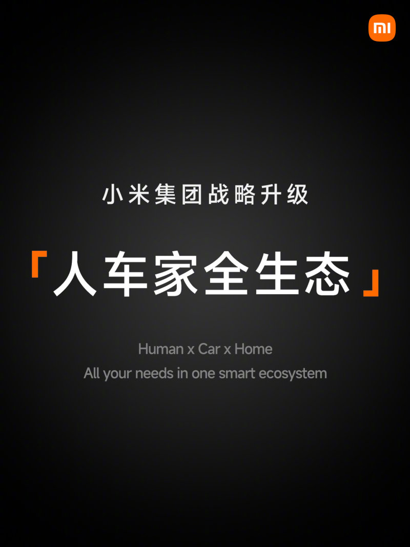 从「手机 X AIoT」,升级到「人车家全生态」。从个人设备到智能家居,再到智能出行,打造以人为中心,打造「人车家全生态」智能世界。