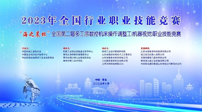 2023年10月27日至30日,由中国机械工业联合会、中国就业培训技术指导中心和中国机械冶金建材工会全国委员会主办,机械工业职业技能鉴定指导中心、青岛西海岸新区管理委员会、青岛古镇口核心区管理委员会和青岛市第二技术学校承办,机械工业经济管理研究院、山东省国防机械电子工会委员会、山东铭智教育科技有限公司、山东融京智能科技有限公司和上海汀树科技有限公司协办,江苏海渡教育科技集团有限公司、浙江钱江机器人有限公司、无锡信捷电气股份有限公司、青岛海之晨工业装备有限公司和中国移动通信集团山东有限公司青岛分公司支持的2023年全国行业职业技能竞赛——“海之晨杯”全国第二届多工序数控机床操作调整工(机器视觉)职业技能竞赛,即将在山东省青岛市拉开全国总决赛的帷幕。