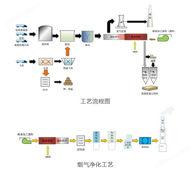 2.危险废物资源化利用,生产高性能轻集料,作为高强混凝混土的骨料、掺合料及内养护剂,可以提高高强混凝土的性能,节省高强混凝土天然骨料、掺合料的使用量。