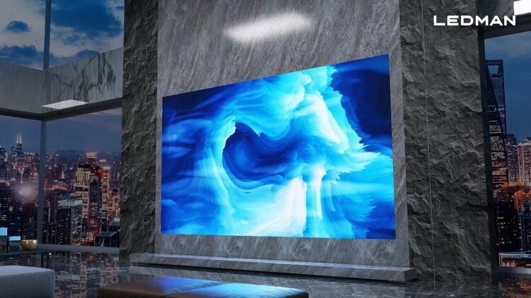应用PM驱动玻璃基Micro LED显示屏的220英寸雷曼超高清家庭巨幕分辨率为3840*2160,亮度达600nits,可视角度超过170°,色域为90%DCI-P3,屏体显示面防护等级达到IP65。从产品整体性能上看,雷曼玻璃基Micro LED家庭巨幕在亮度、分辨率、色域、防蓝光、响应速度和使用寿命上均有卓越的表现。