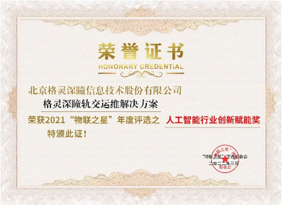 在此次物联之星评选中,格灵深瞳作为行业领先的人工智能科技公司,凭借自身在AI行业的多年积累,以及在AIoT领域的应用发展,荣获“2021中国最有影响力AIoT企业奖”!同时,格灵深瞳在轨交运维领域进行前瞻性布局,公司的轨交运维解决方案还荣获“人工智能行业创新赋能奖”!
