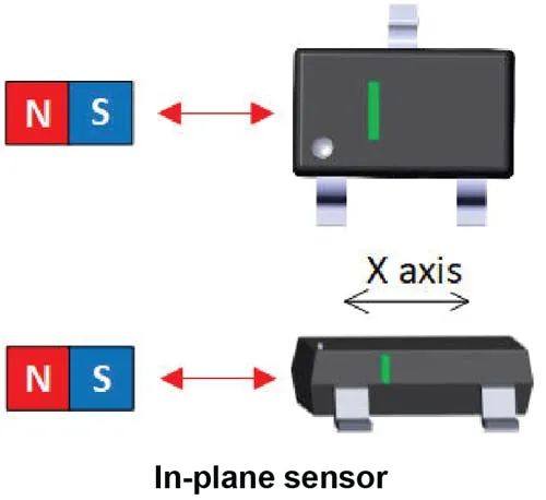 影响传感器特定磁体放置的主要因素包括灵敏度水平、传感方向(平面内与平面外)、封装产品、板载传感器数量和可配置性。灵敏度更高的霍尔效应传感器可以检测到更远的磁铁。