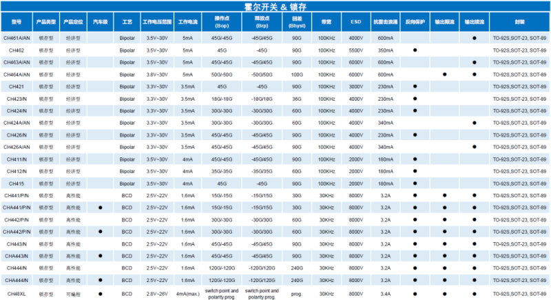 国产汽车级双极锁存霍尔传感器CHA44X介绍