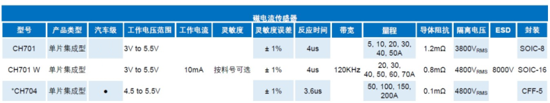 一款专为电流检测应用开发的高隔离集成式霍尔电流传感芯片--CH701W