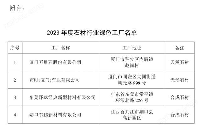 附件:2023年度石材行业绿色工厂名单