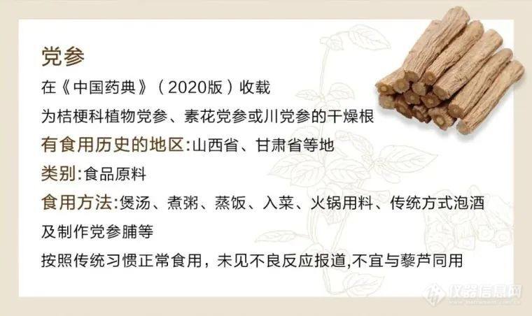 2、本次党参等9种物质新增纳入食药物质目录,完善了食药物质作为食品的安全指标,如铅、镉、砷、汞、二氧化硫分别按照国家标准规定的方法测定,农药限量应符合农业农村部的相关规定等。