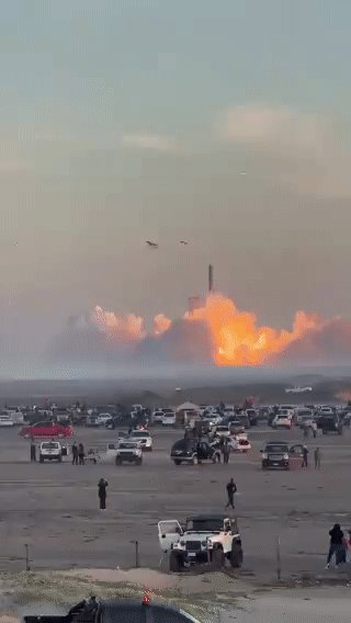 接着开始有不同地方的人分享从自己视角拍到的星舰,尤其是这段从和发射基地接壤的墨西哥塔毛利帕斯州拍下的视频,堪称最佳视角: