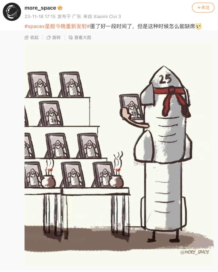 这在火箭开发上也是史无前例的,也难怪每到有星舰的新测试,网友@more_space 都会祭出下面这张图: