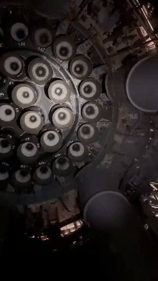 马斯克在X上发布过一段近距离观看推进器底部猛禽发动机的视频: