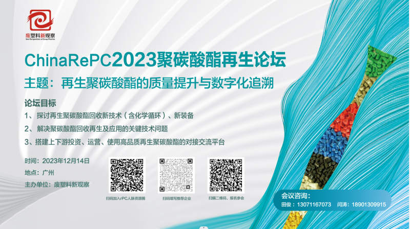 【兴旺宝 展会报道】在我国治理塑料污染重大改革及全球塑料公约即将交汇的时间点,为了加快聚碳酸酯行业循环发展进程,剖析聚碳酸酯回收再生过程中的痛点,探讨聚碳酸酯行业发展趋势,解决聚碳酸酯回收再生过程中的现实问题,拓展上中下游联手解决塑料污染新方式,提升聚碳酸酯回收再生的质量和效率,打通聚碳酸酯回收再生上下游,在2023年12月14日(星期四),将召开由废塑料新观察主办的ChinaRePC2023聚碳酸酯再生论坛。
