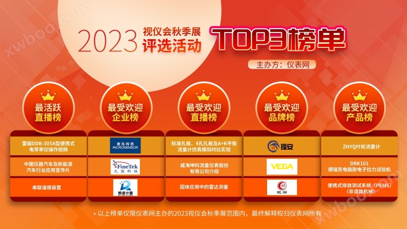 【仪表网 在线展会】11月17日,由仪表网主办的2023视仪会·秋季展圆满落幕,自11月13日开展以来,重磅嘉宾的致辞、干货满满的云访谈、丰富多样的企业直播、互动感满满的签到与评选、贴心的逛展攻略等赢得了观众与展商的好评。