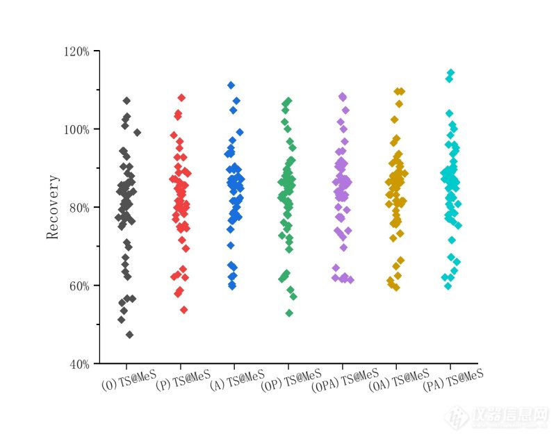 图3 净化模式对牛奶中兽药多残留回收率的影响
