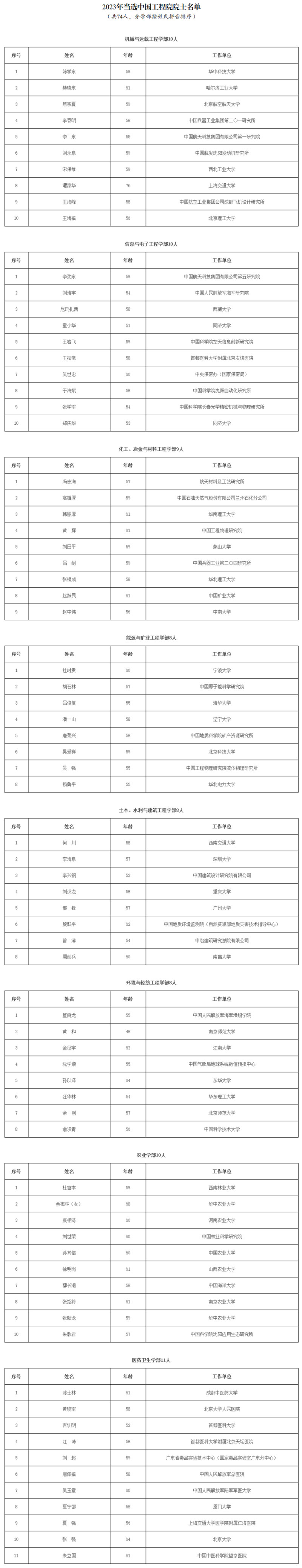关于公布中国工程院2023年院士增选当选院士名单的公告