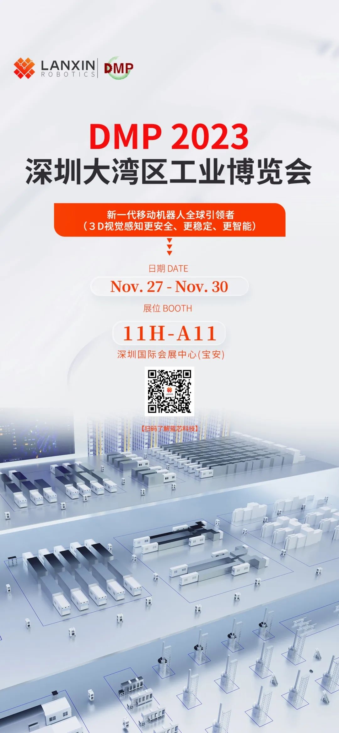 11月27~30日,2023年大湾区工业博览会(DMP)将在深圳国际会展中心(宝安)举办,蓝芯科技将携智能工厂解决方案及经典案例亮相。
