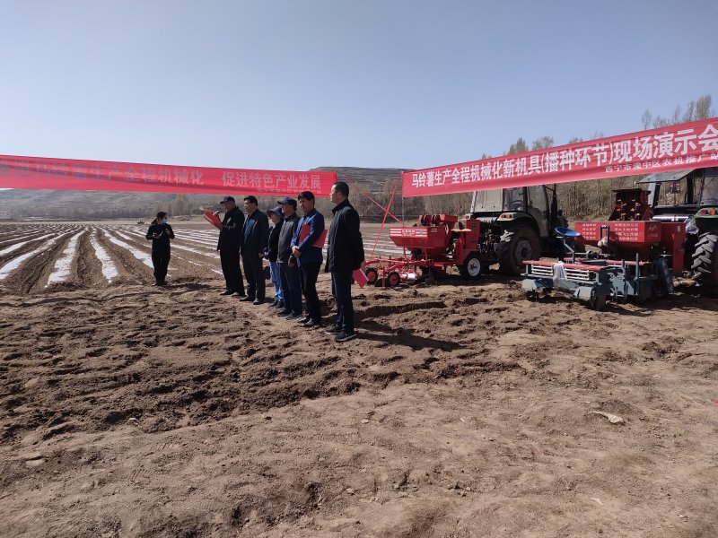 为进一步提高马铃薯、蔬菜特色产业的机械化程度,攻克技术推广工作中的难点和瓶颈,采取“单位+新型经营主体”模式,发挥多方信息、渠道、实践经验优势,补短板 强弱项,积极引进马铃薯、蔬菜机械化薄弱环节新技术、新机具,举办新机具现场演示会,以最直观方式进行新技术示范推广,进一步推动特色产业提质增效,绿色发展。一是先后引进马铃薯马铃薯种植、中耕培土、灭秧、联合收获及中小型装袋马铃薯收获机,分拣装袋、挖掘装车一体机新机具,开展示范推广,率先在全省实现了川水地区马铃薯生产全面、全程机械化,引进中小型装袋马铃薯收获机,分拣装袋、挖掘装车一体机突破了马铃薯机械挖掘后,捡拾、装袋的机械化技术瓶颈。二是先后引进蔬菜大棚机械深翻换茬机、多功能蔬菜播种机、秧苗移栽机、种子丸粒化机、烘干机、种子编织机、精量播种机、喷药覆膜机等蔬菜精量直播系列先进机具及大葱市场全程机械化生产机具试验示范填补了蔬菜机械化生产空白。
