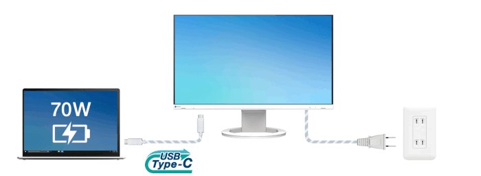 在使用笔记本电脑等移动设备时,FlexScan EV2490 还能够输出 70W 的功率,以便用户在桌面上连接键盘、鼠标、网络摄像头、多台显示器等外设,并且长时间使用。