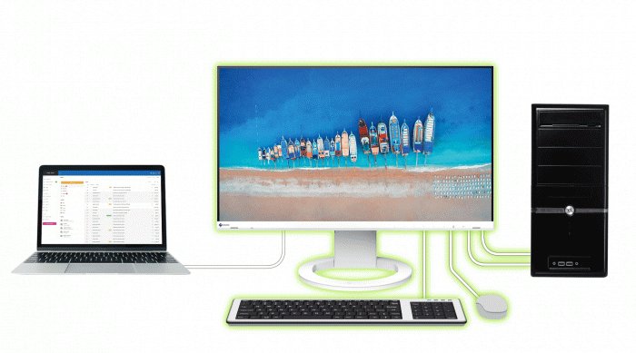 随着现代笔记本变得更加轻薄便携,其连接扩展选项也变得相对有限。但若搭配 EIZO FlexScan 系列商用显示器,你就可以通过 USB-C“一线通”的方式来扩展丰富的功能。