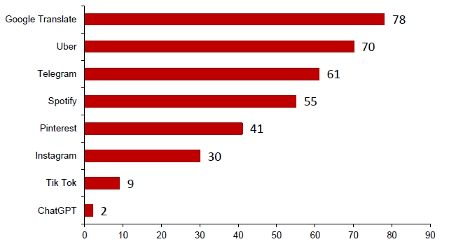 图表 不同APP达到1亿活跃用户所用时间(月)