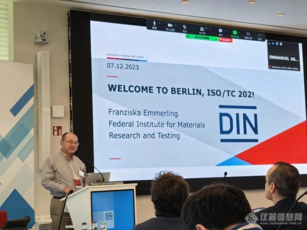 国际标准化组织微束分析技术委员会(ISO/TC 202)第30次全体会议于2023年11月22-24日在德国标准化研究所成功举办。来自德国、英国、日本、乌干达、中国的50余名专家以线上、线下结合的方式参加了会议。