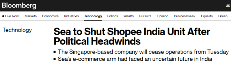 印度市场的政策风险,并不仅限于中国企业,2022年3月,跨境电商平台Shopee宣布,退出印度市场。据报道,其官方的解释是,“考虑到全球市场的不确定性。”